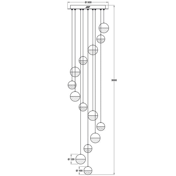 • Material: Metal ceiling plates, suspension wires and glass shades