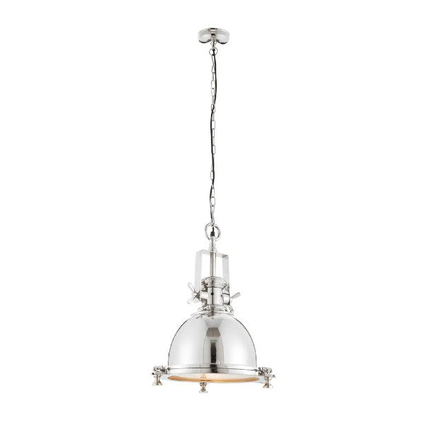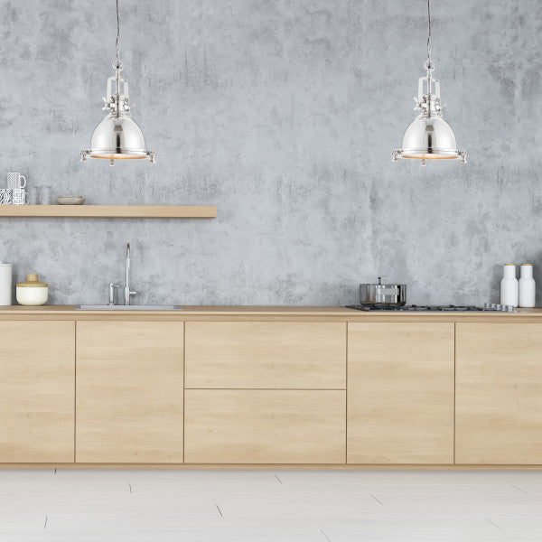 Bring industrial flair to any space with this Fenton E27 Industrial Style Pendant Light. Crafted with a bright nickel plated pendant, glass diffuser, and height adjustable cable, this light offers a timelessly sleek design. The E27 bulb makes it the perfect kitchen island or dining lighting.