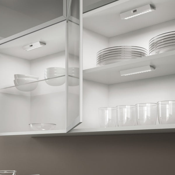 The York Cabinet Downlight is a wedge shape light ideal for internal cabinet lighting. Includes an integrated infrared sensor switch.